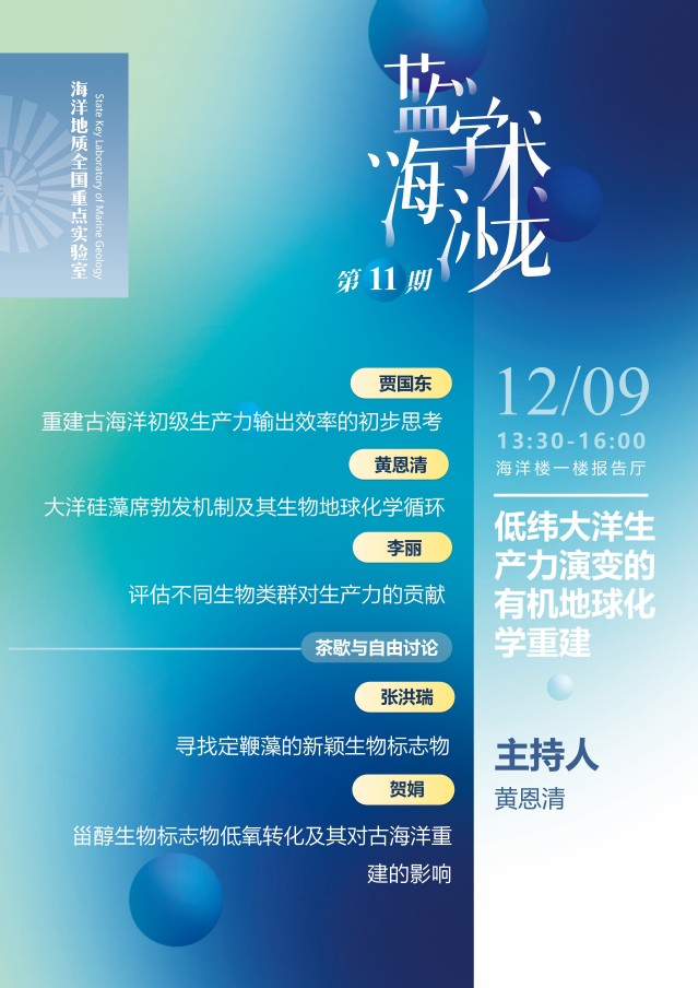 第十一期蓝海学术沙龙:低纬大洋生产力演变的有机地球化学重建