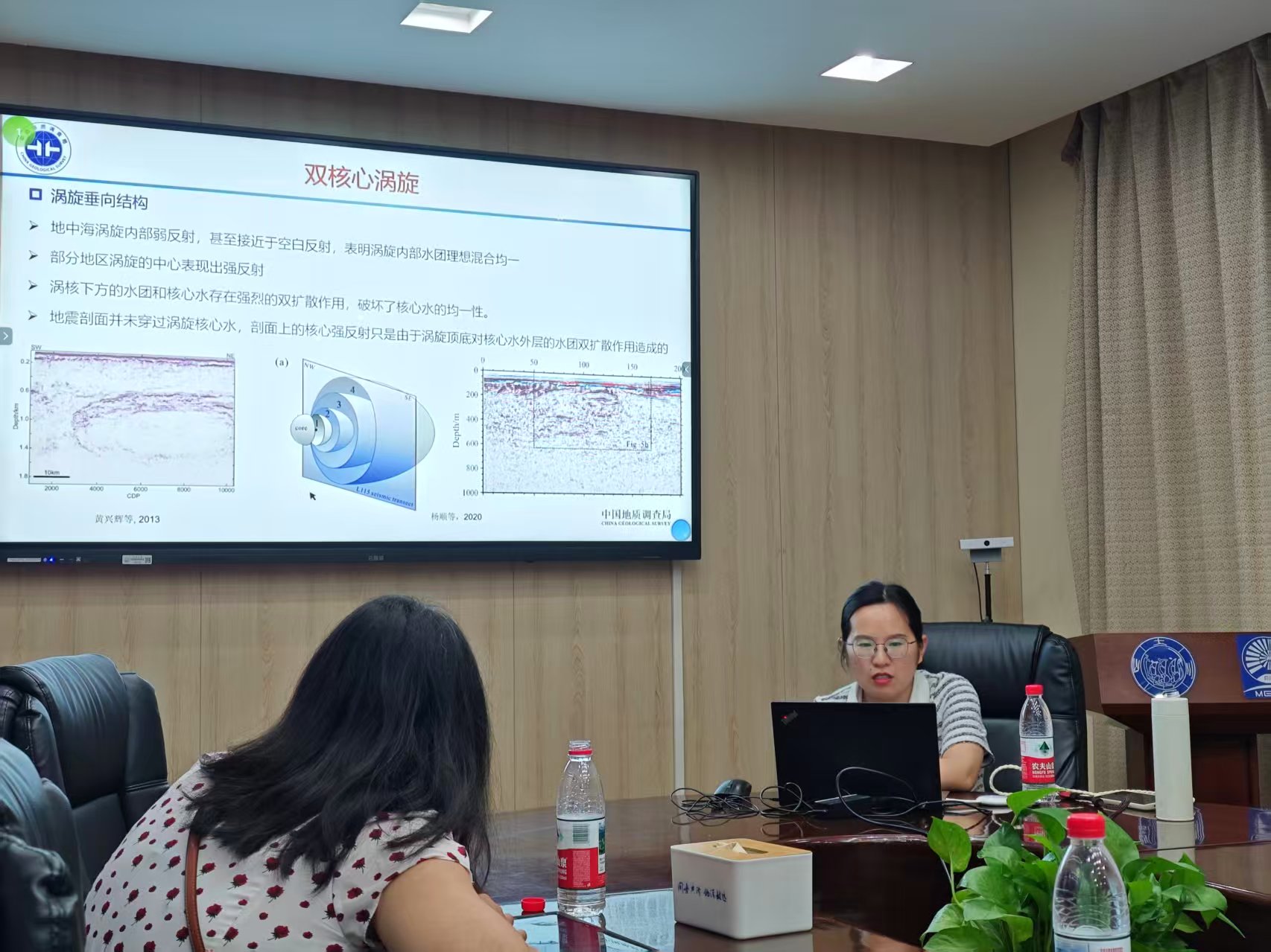 2025年9月25日至9月30日,广州海洋地质调查局耿明会老师来访交流,其开放课题为“南海东沙岛礁南部复杂水下沙丘时空演变特征及机制研究”。访问期间,她系统汇报了课题在多期地形对比、声学剖面解译和数值模拟等方面的阶段性进展,展示了典型剖面和三维地形变化实例。围绕水下沙丘演化机制,她与实验室科研人员重点讨论了将地震海洋学方法引入沙波上方水体结构变化与内波活动识别的技术思路,具体比对了不同观测手段在时间分辨率和空间覆盖上的优缺点。双方还就SWOT卫星数据的获取与处理、共偏移距剖面数据采集方案以及联合观测布设的技术细节展开了多轮讨论,初步形成了若干可操作的观测与分析方案。本次来访以数据展示和技术交流为核心,显著推动了水下沙丘时空演化与内波活动耦合研究的深入开展。