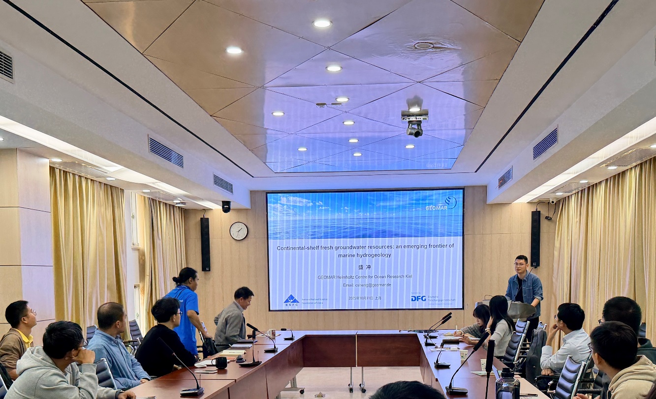 2025年10月31日,德国亥姆霍兹基尔GEOMAR盛冲博士来访开展开放课题“南海陆架地下水系统与古水文演化研究”相关交流。盛冲博士在题为“Continental-shelf fresh groundwater resources: an emerging frontier of marine hydrogeology”的学术报告中,系统梳理了南海北部、大西洋和波罗的海陆架淡水及微咸水资源的空间分布特征、补给来源和成因机制,并结合多同位素示踪、地球物理反演及数值模拟等方法,探讨了陆架地下水系统在地质历史时期对气候变化与海平面波动的响应。访问期间,他与实验室科研人员就南海陆架钻探与取样策略、古水文模型构建、观测与模拟耦合方法等问题进行了深入交流,并参观了临港基地和相关实验平台。本次来访通过报告交流与技术讨论,进一步完善了南海陆架地下水与古水文演化研究的具体实施方案。